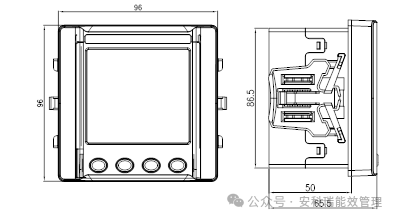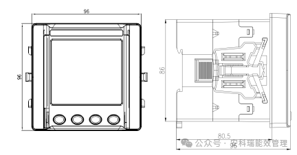 The APM521 offers two installation methods: Flush Mount (96×96 square) and DIN Rail Mount. Its compact structure adapts to various cabinet installation environments. The front panel has an IP54 protection rating, and the rear housing is IP30, providing good dustproof and slight splash-proof capabilities, suitable for indoor dry environments.